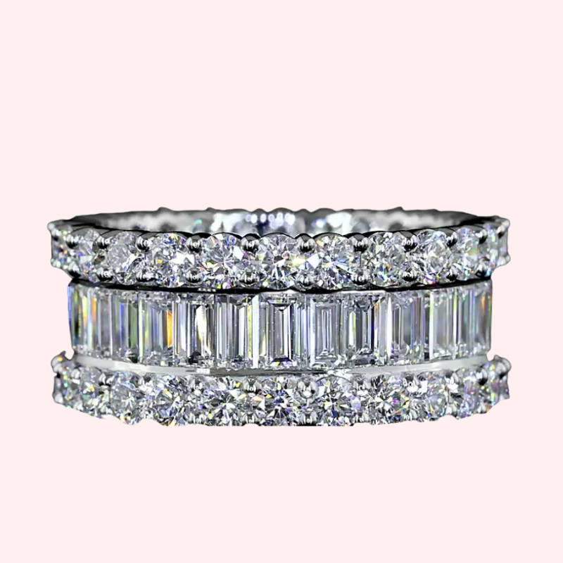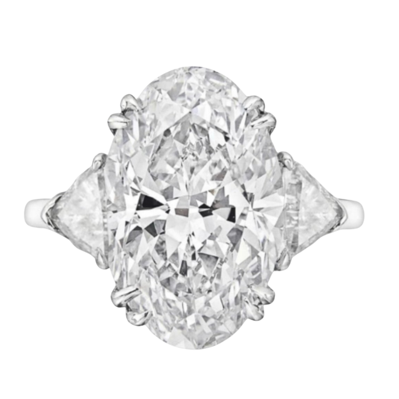 Women’s 6.19 Carat Oval Diamond Ring with Trillion Cut Diamonds – Lab Grown, VS1 Clarity, E Color