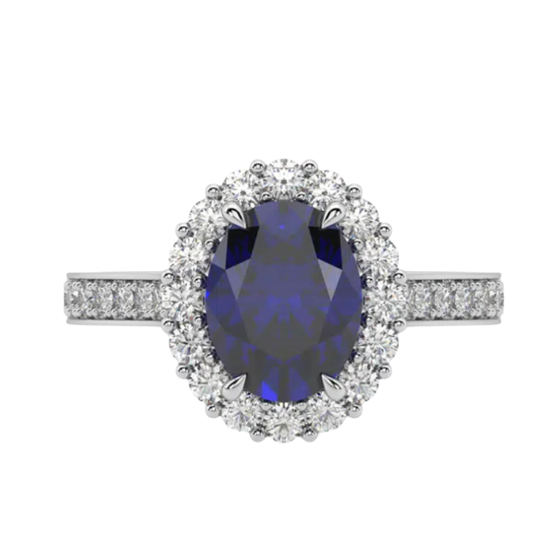 Women’s Oval Blue Sapphire Halo Ring – Diamond Accent, 18K Gold/Platinum