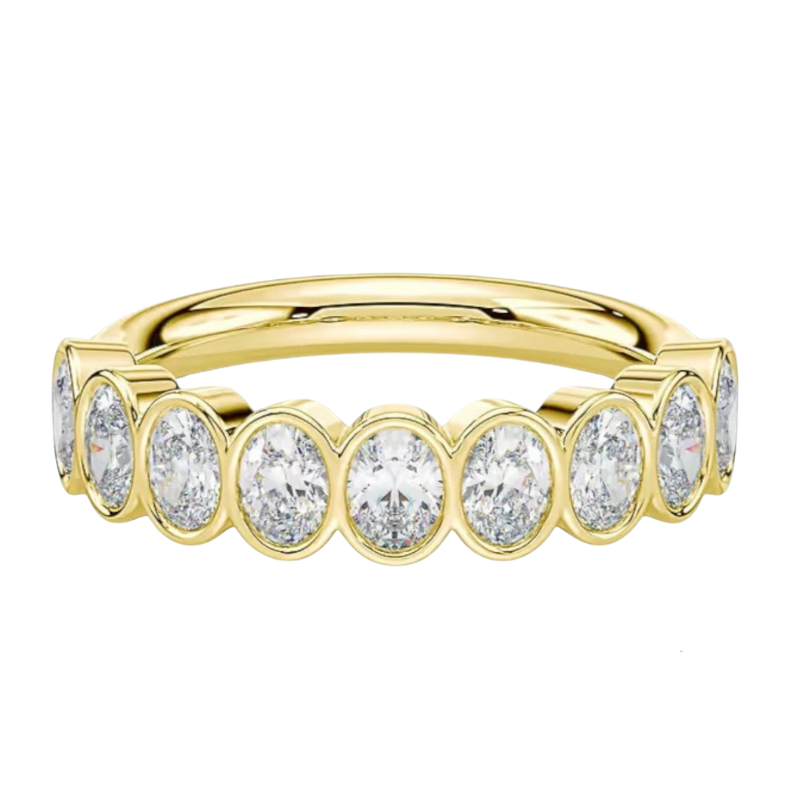 Hannah Bezel Set Oval Diamond Half Eternity Wedding Ring – 1.5 Carat Gold